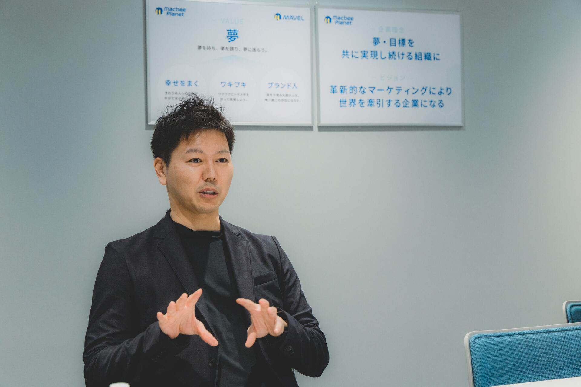 2021年12月に株式会社Macbee Planetの代表取締役社長に就任。成果報酬マーケティングのリーディングカンパニーとしての組織づくりや、グループ全体の事業を牽引している。