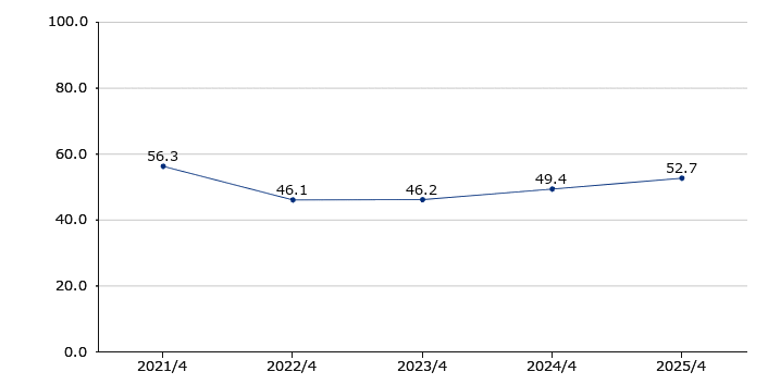 親会社所有者帰属持分比率 | 56.3 | 46.1 | 46.2 | 49.4 | 52.7 |